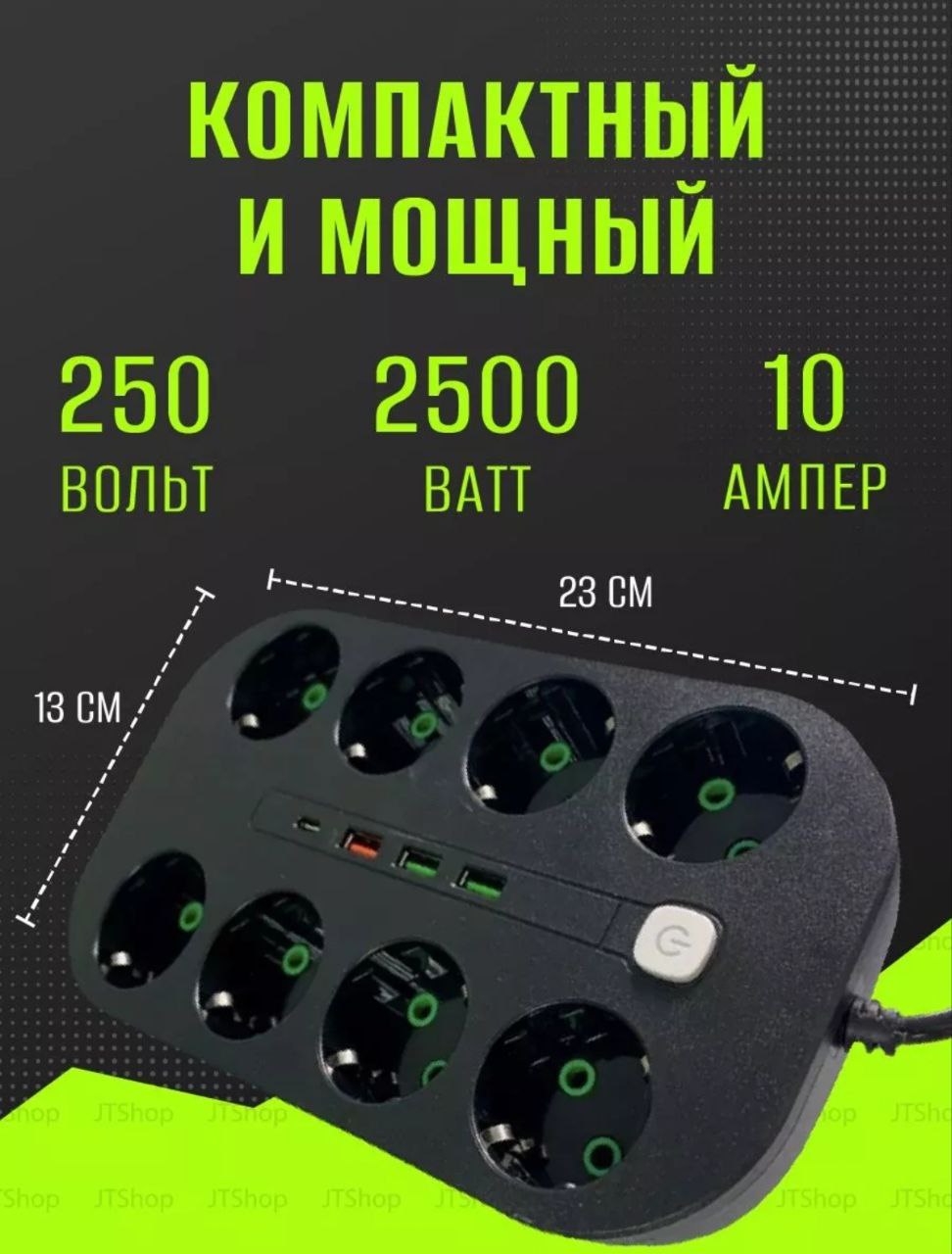 Благодаря компактному размеру, Сетевой фильтр легок в установке и не занимает много места, что особенно важно при ограниченных условиях пространства. А Благодаря его мощности незаменимым помощником в доме, офисе, мастерской или даже на даче, где требуется множество различных электроприборов.